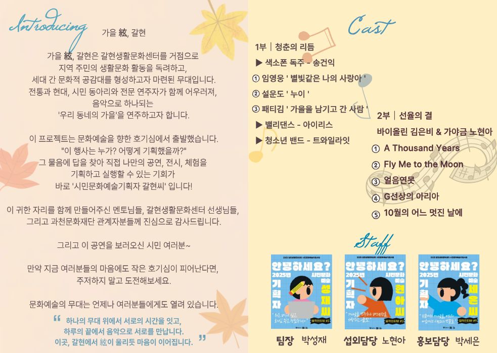 2025 <갈현생활문화데이 with 갈현씨> 공연 세부 프로그램 안내