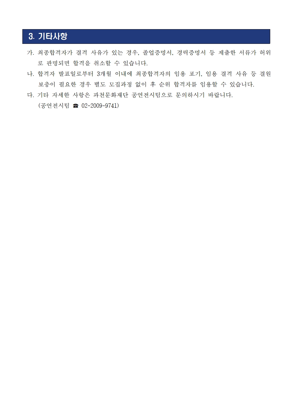 2026년 과천문화재단 기간제 근로자 최종합격자 공고(문화시설 운영)