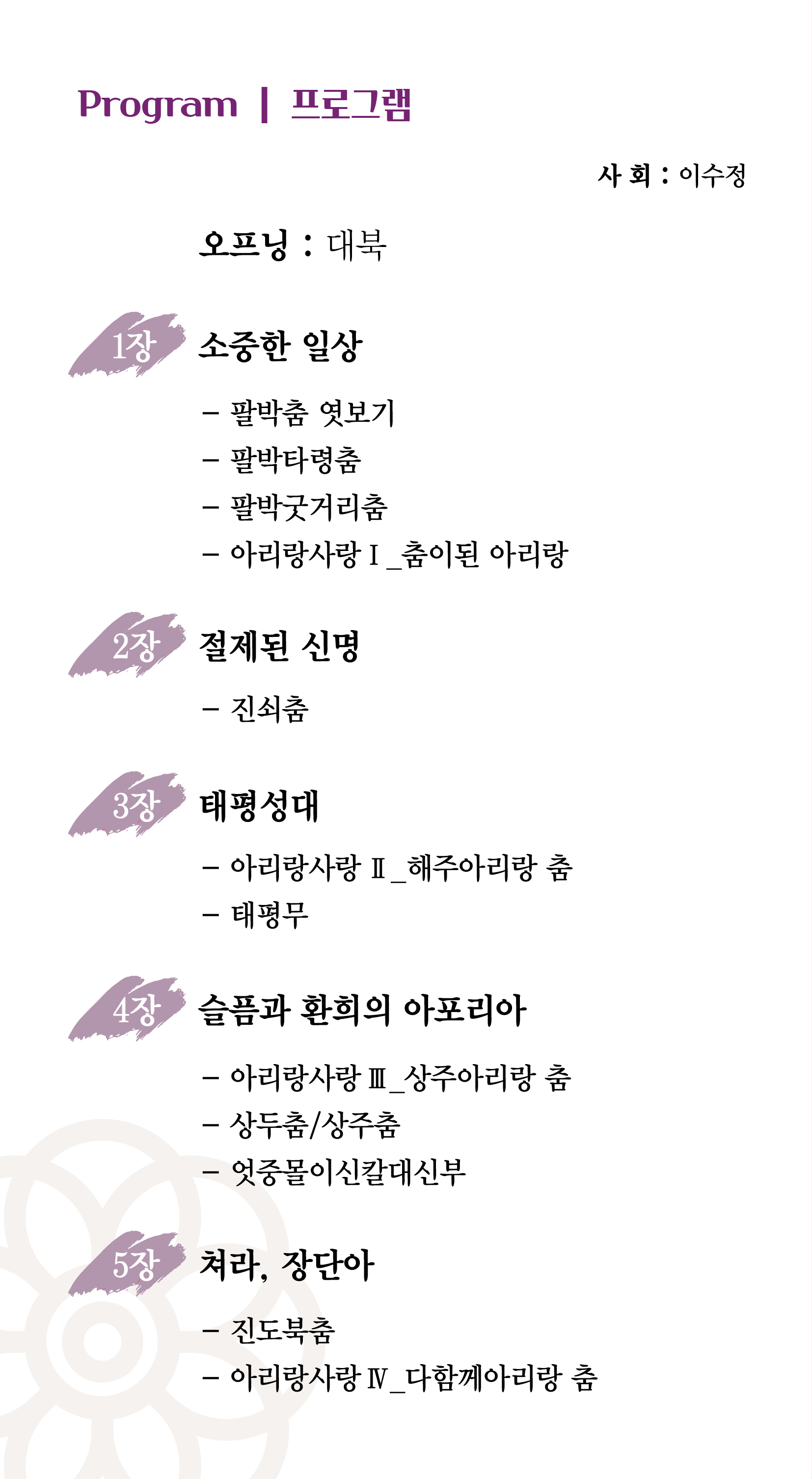 ○ 주관 : 과천문화재단, 재인청춤전승보존회