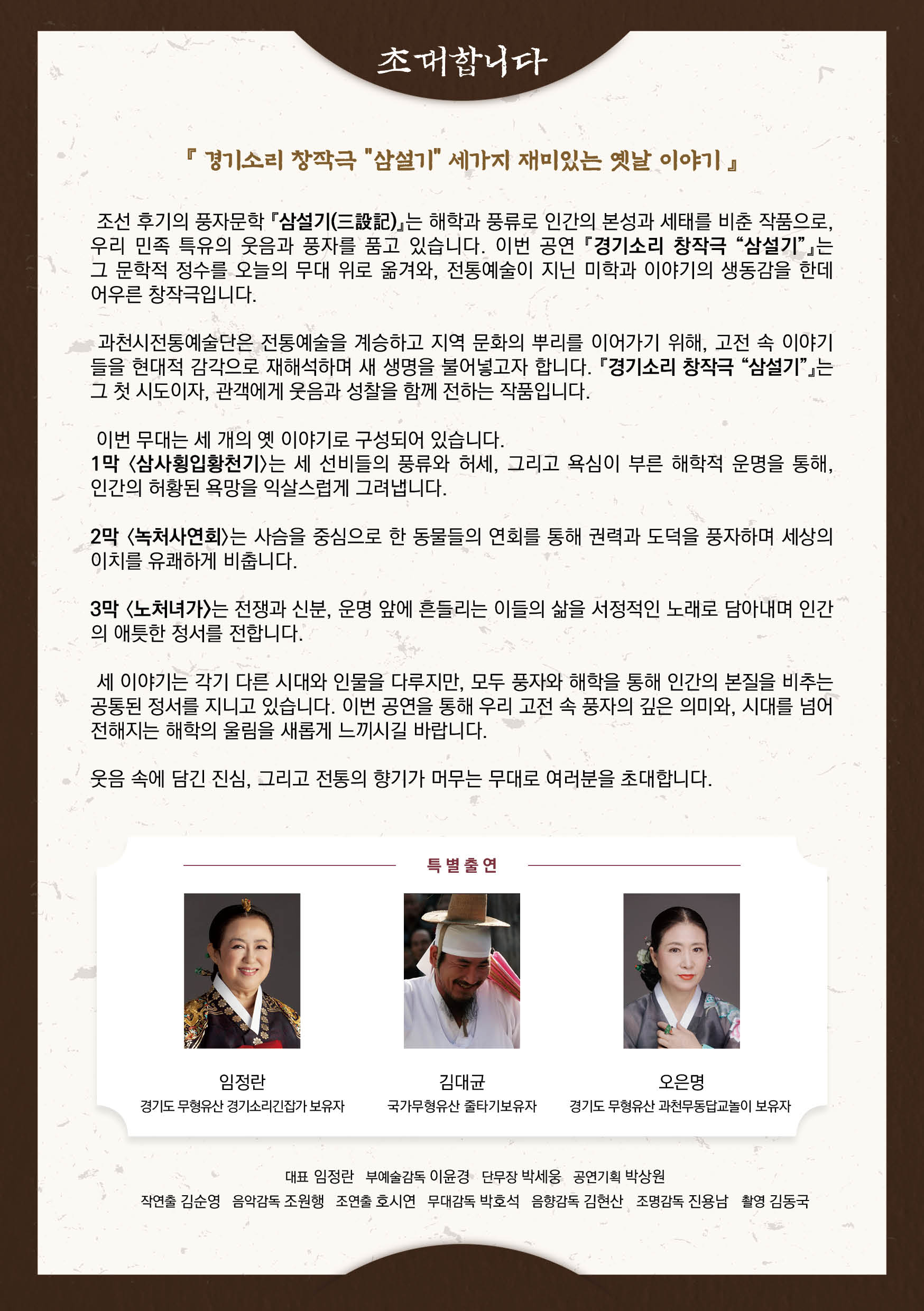 경기소리창작극 “삼설기” - 세가지 재미있는 옛날 이야기